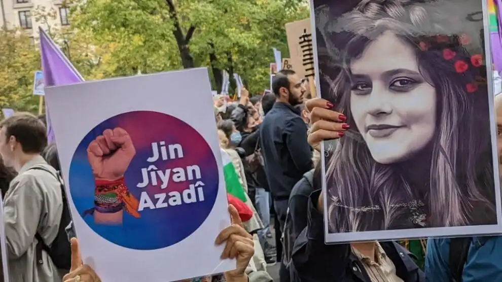 Jîna Emînî bir Kürt kadındı, katledildi ancak tüm İran onun için yürüdü. “Jin jiyan azadî” sloganı ilk kez Kürdistan’da atıldı ve tüm İran bu slogan ile ayağa kalktı. Önder Apo “‘Bu efsuni slogan’ ve nereye ulaşırsa etkili olur” dedi. Gerçekten de Önder Apo’nun bu tespiti en çok da İran halkları için yerini buldu.
