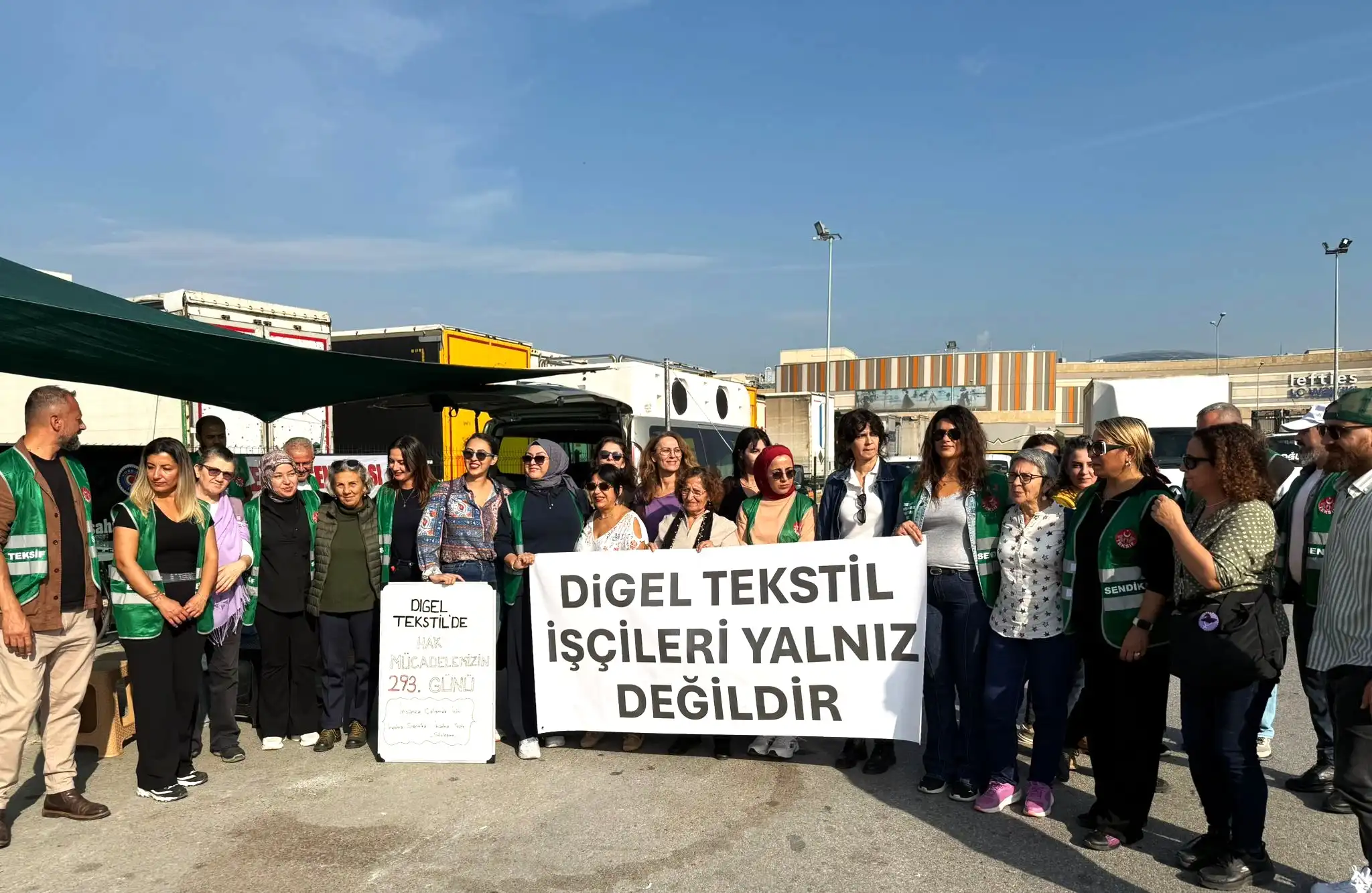 İzmir’in Gaziemir ilçesindeki Ege Serbest Bölge’de faaliyet gösteren Almanya merkezli erkek giyim firması Digel Tekstil’de çalışan TEKSİF üyesi işçilerin direnişi bir yılı aşkın süredir devam ediyor. Sendikal örgütlenmenin engellenmesi, taciz ve mobbing iddiaları ile düşük ücretlere karşı başlatılan mücadelede işçilerin büyük bölümünü kadınlar oluşturuyor. 422 günü geride bırakan direniş, kadın işçilerin öncülüğünde sürerken, işçiler sendikal haklarının tanınması ve çalışma koşullarının iyileştirilmesi talebiyle eylemlerini sürdürüyor.