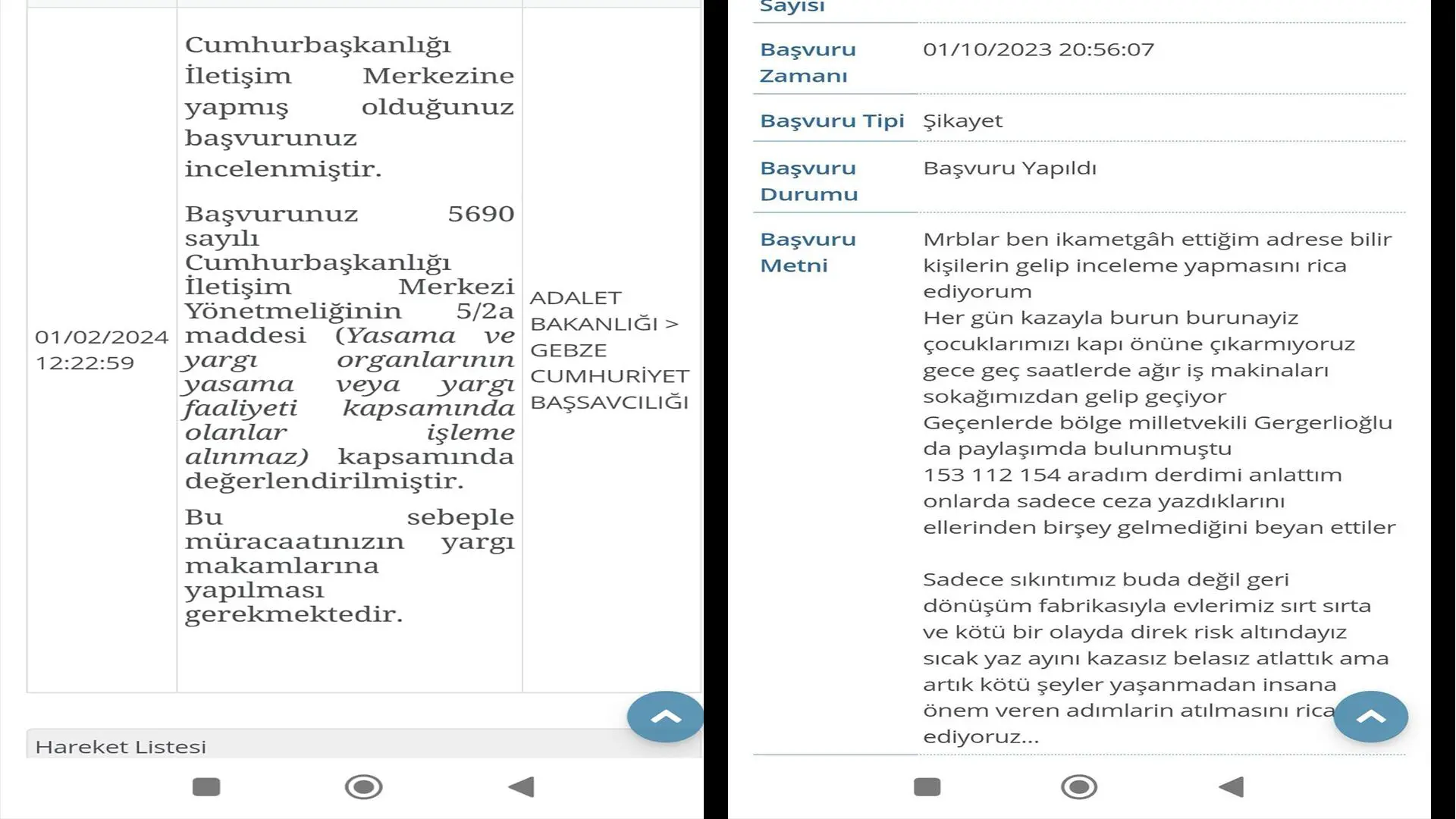 Mahalleli ise mühürlenen Aksu Geri Dönüşüm Fabrikası’nın yeniden faaliyete girmesinden kaygı duyuyor. İsmini vermek istemeyen bir mahalle sakini, söz konusu fabrikanın mahalledeki yaşamı tehdit etmesiyle ilgili Cumhurbaşkanlığı İletişim Merkezi’ne (CİMER) başvurduğunu dile getirdi. 1 Ekim 2023’te yapılan başvuruya ise 1 Şubat 2024’te yanıt verildi. CİMER’in yanıtında, mahkemeye başvurulması gerektiği ifade edilerek, “Müracaatınızın yargı makamlarına yapılması gerekmektedir” ifadesi kullanıldı.