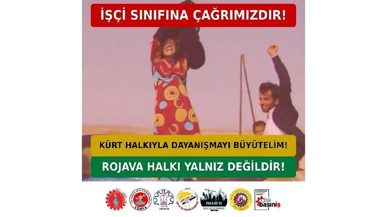 Açıklamada, Kürt, Alevi ve Dürzi halklarının direnişine omuz vermenin işçi sınıfının tarihsel ve enternasyonalist bir sorumluluğu olduğu belirtilerek, “Rojava’ya tahammül edemeyenler örgütlü emek mücadelesine de düşmandır. Buna izin vermeyeceğiz” denildi.