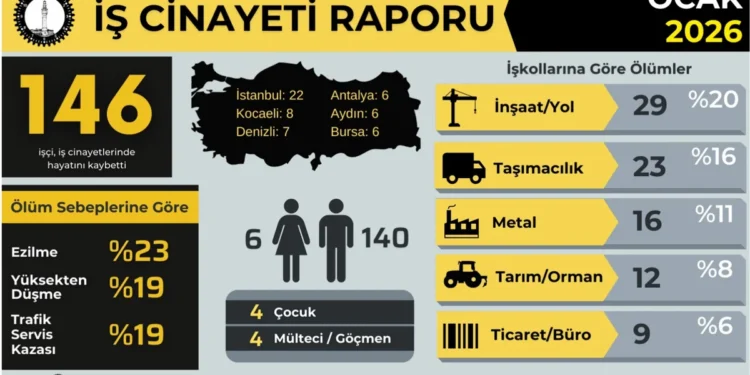 İşçi Sağlığı ve İş Güvenliği Meclisi’nin raporuna göre, Ocak ayında en az 146 işçi iş cinayetlerinde hayatını kaybetti