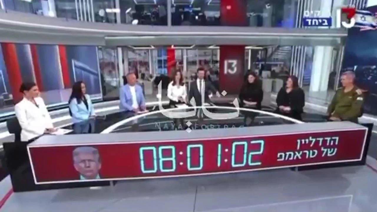 ABD Başkanı Donald Trump’ın İran yönetimine anlaşma için verdiği süre dolmadan, İsrail’de yayın yapan Kanal 13 televizyonu stüdyo masasının önüne “Trump’ın tanıdığı son süre” yazılı bir geri sayım sayacı koydu.