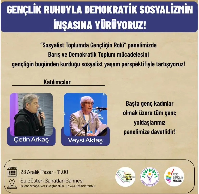 Panel, gençlerin sosyalist toplum inşasındaki rolünü ve demokratik mücadele süreçlerini ele alacak.