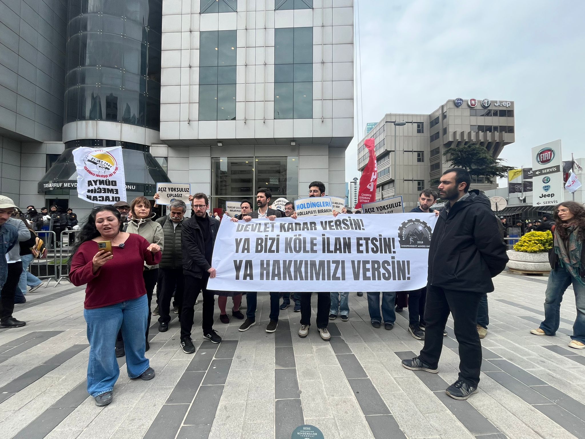 Bağımsız Maden İşçileri Sendikası (Bağımsız Maden-İş), aylardır yatırılmayan maaşları, özlük hakları ve kıdem tazminatları için Ankara’ya yürüyen ve gözaltına alınan Doruk Madencileri işçilerine destek eylemi gerçekleştirdi. İstanbul Gayrettepe’de bulunan Tasarruf Mevduatı Sigorta Fonu (TMSF) önünde düzenlenen eylemde, Sosyalist Dayanışma Platformu (SODAP) Sözcüsü ile Halkların Eşitlik ve Demokrasi Partisi ( DEM Parti) İstanbul Milletvekili Kezban Konukçu ve DEM Parti İstanbul İl Eşbaşkanı Çınar Altan’ın yanı sıra birçok sendika temsilcisi de katıldı.