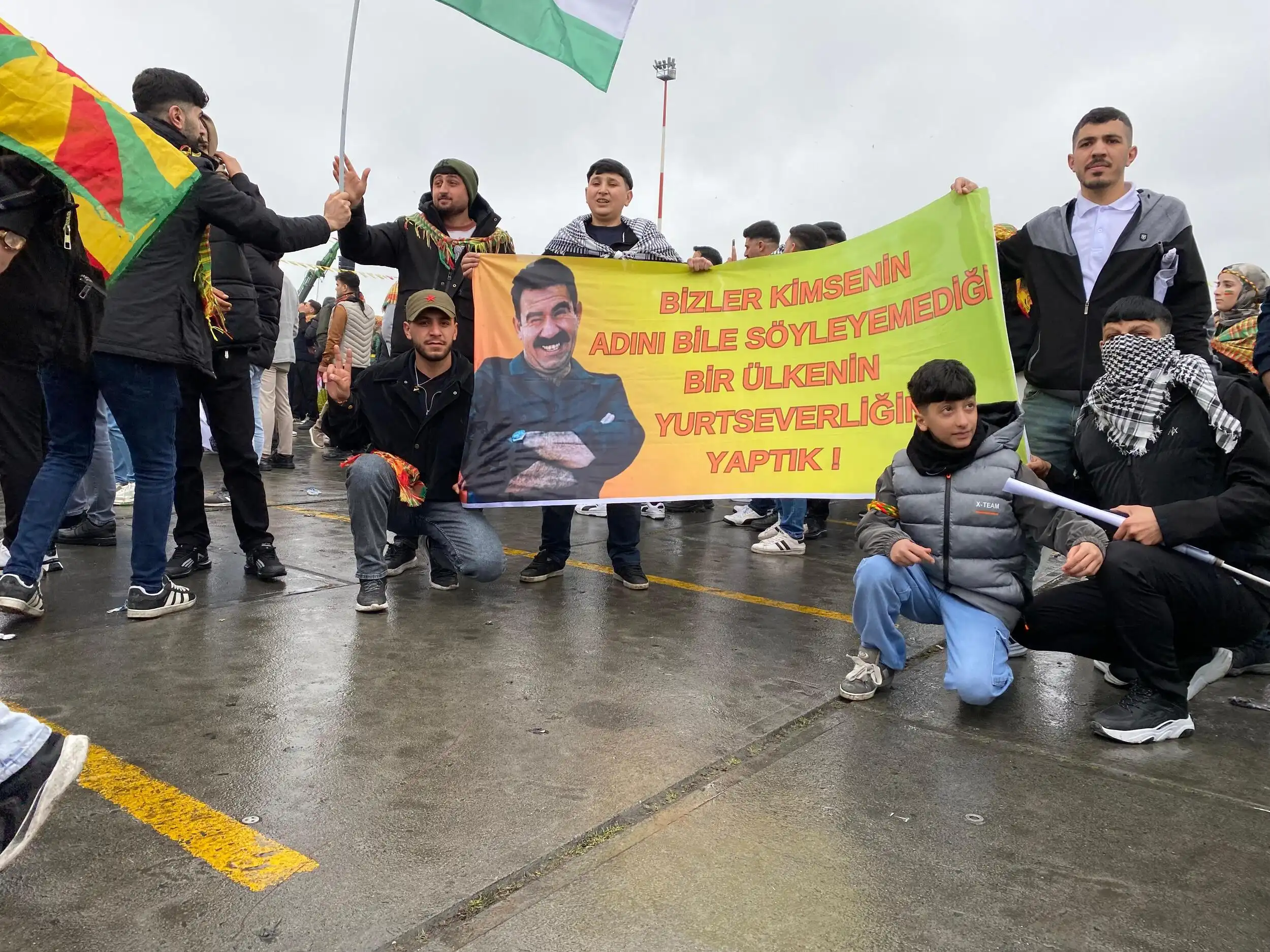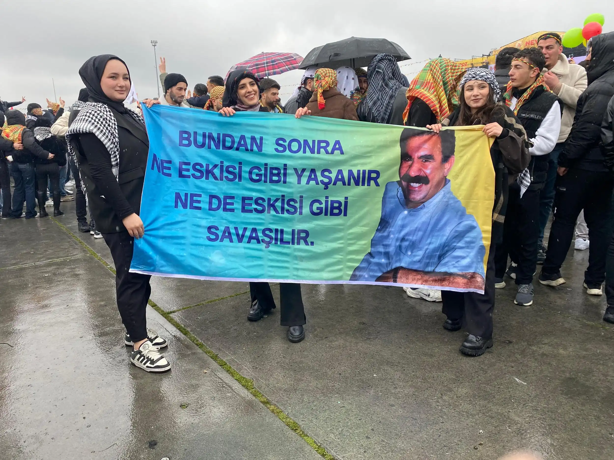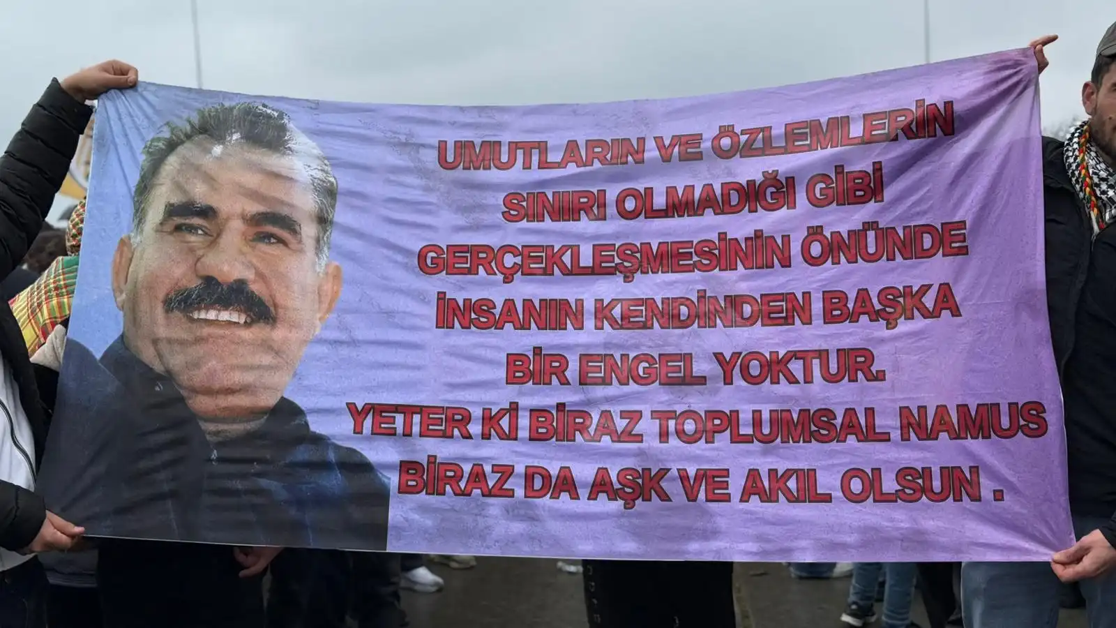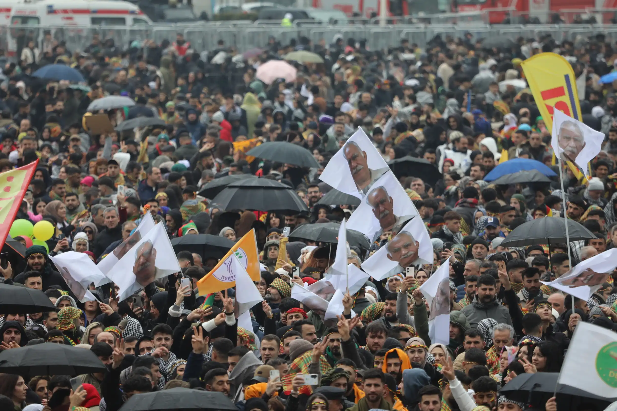 Alanda Kürt Halk Önderi Abdullah Öcalan’ın mesajı büyük bir ilgiyle takip edilirken, alanda Abdullah Öcalan’ın fotoğrafları taşındı.
