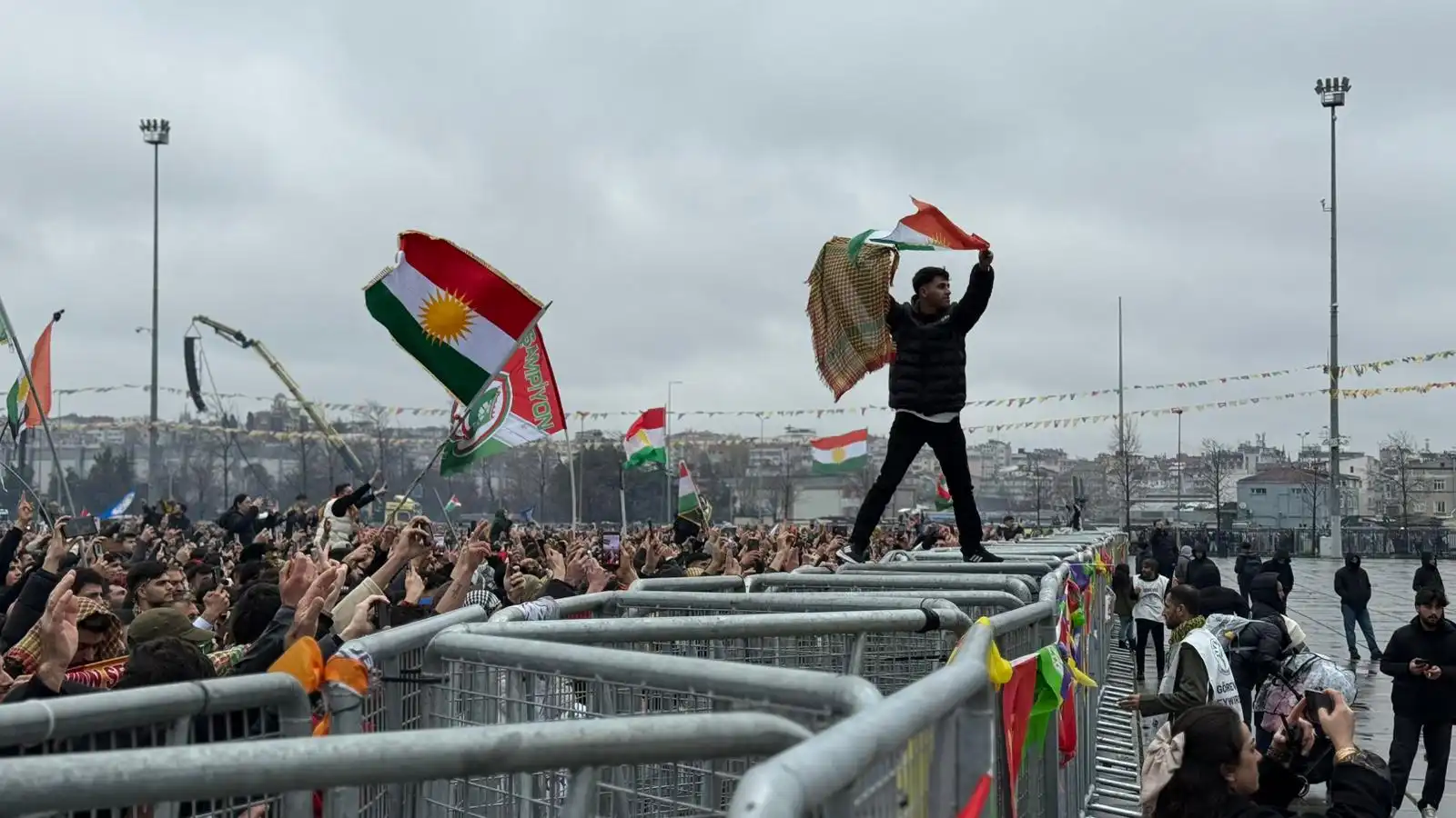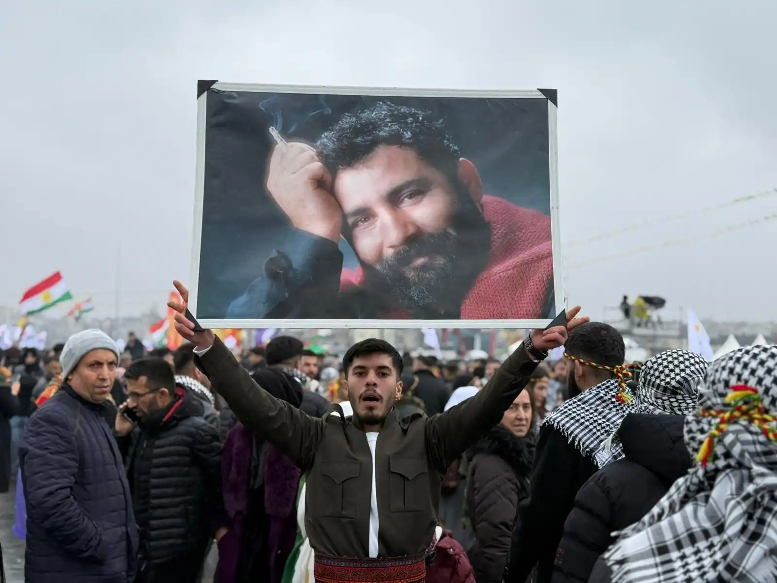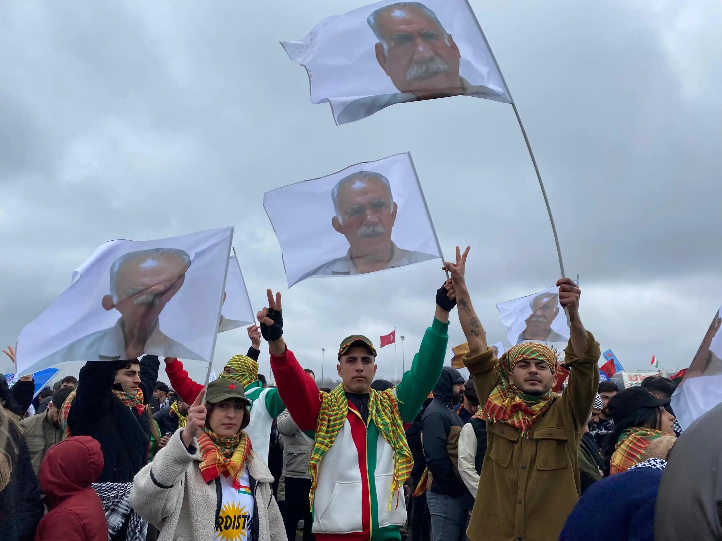 Alanda Kürt Halk Önderi Abdullah Öcalan’ın mesajı büyük bir ilgiyle takip edilirken, alanda Abdullah Öcalan’ın fotoğrafları taşındı.