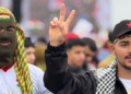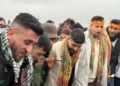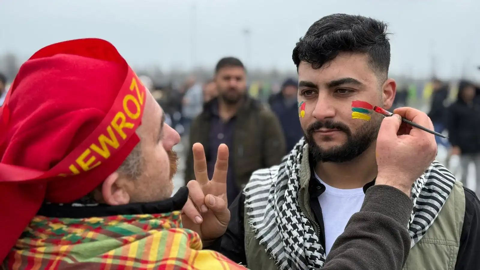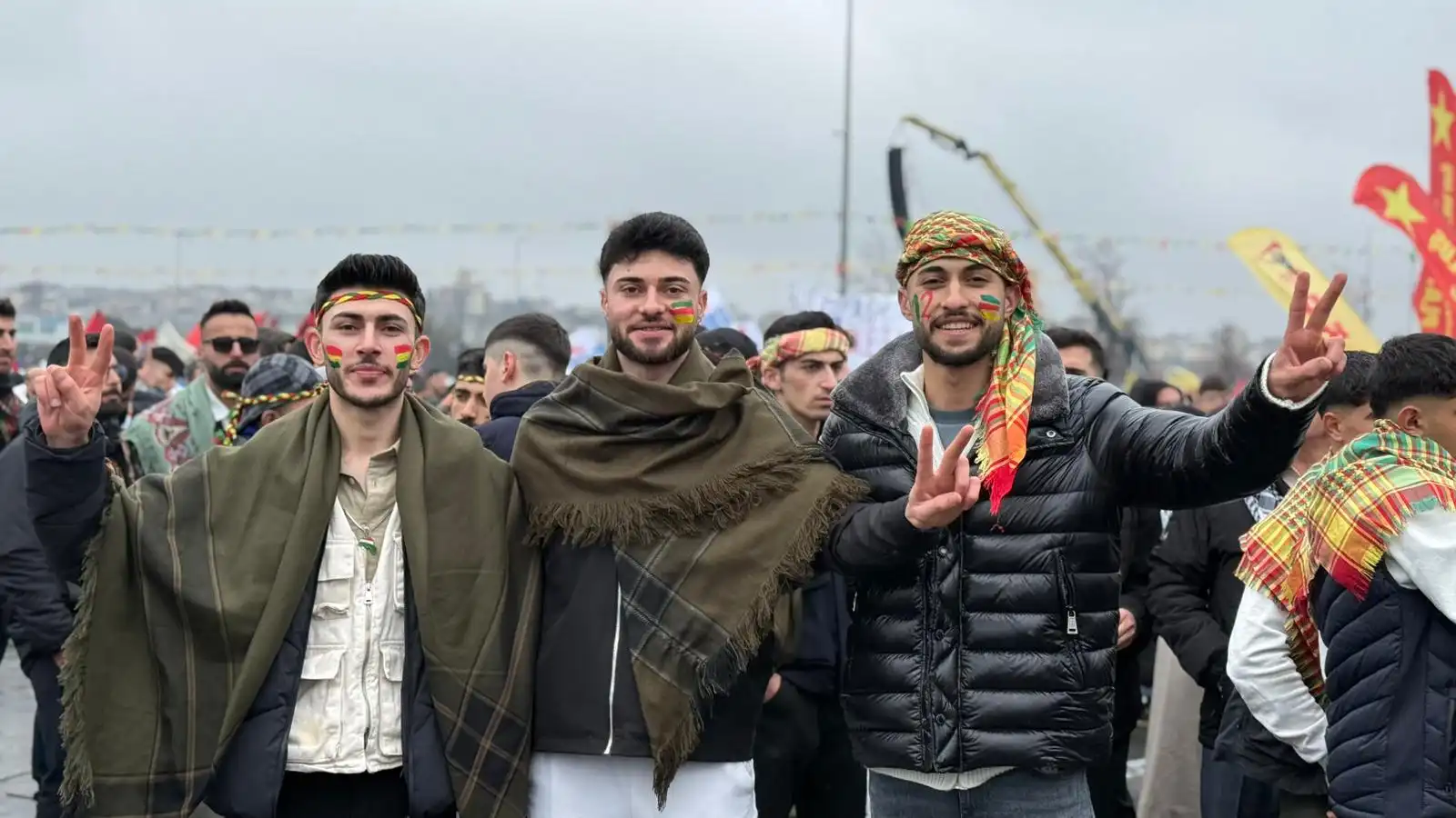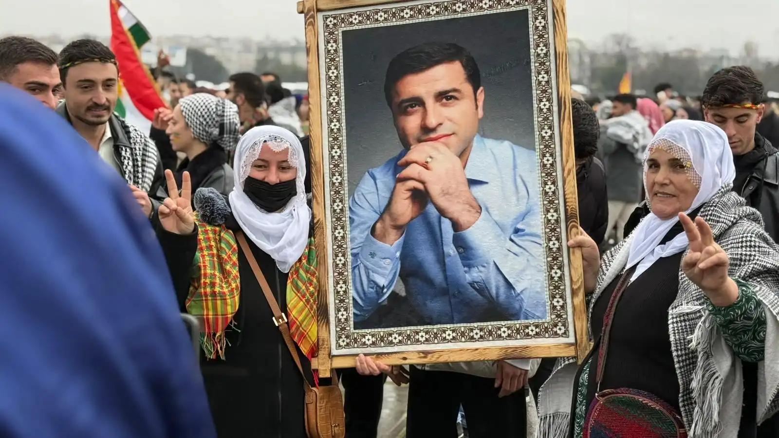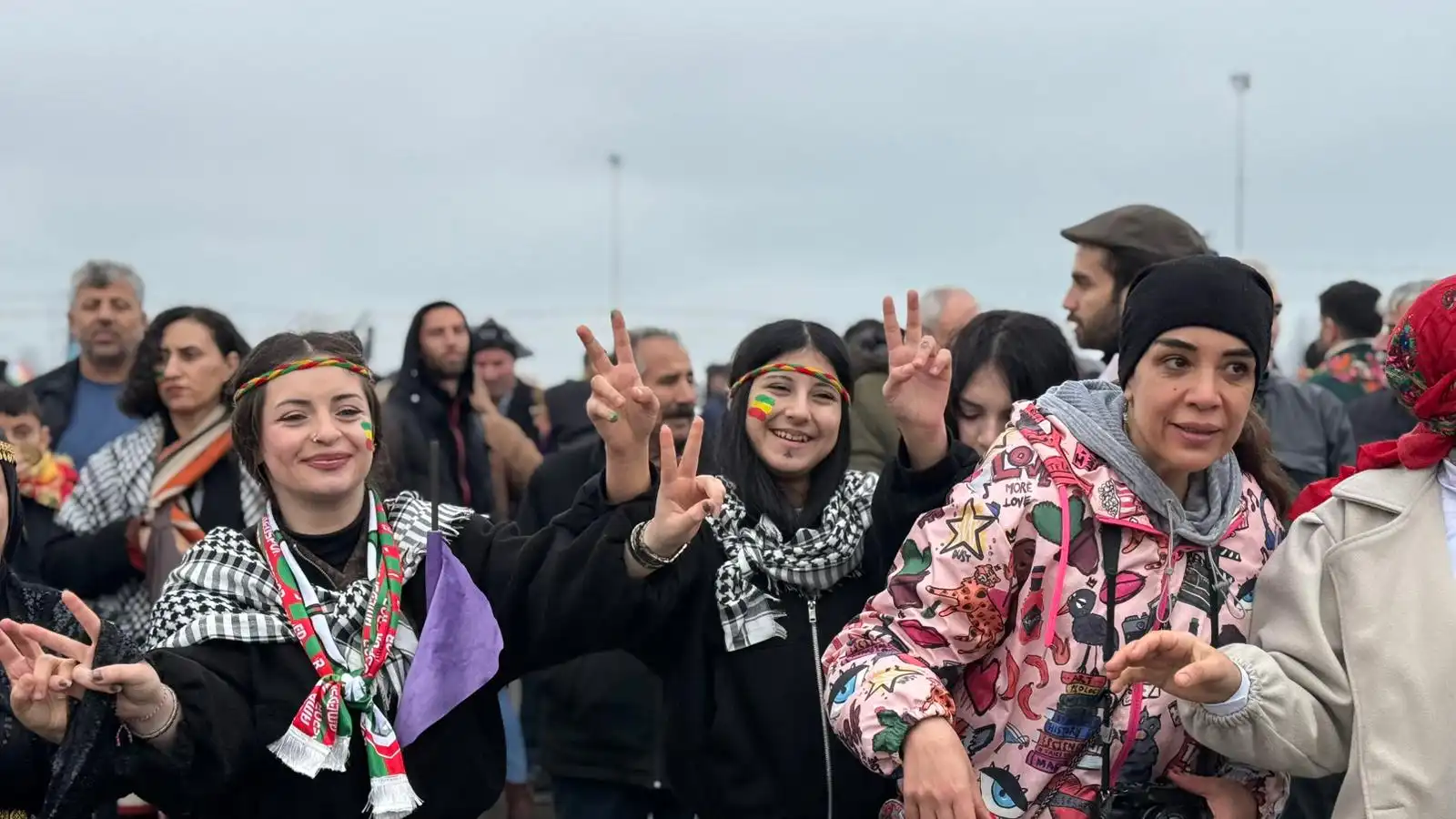 Alanda Kürt Halk Önderi Abdullah Öcalan’ın mesajı büyük bir ilgiyle takip edilirken, alanda Abdullah Öcalan’ın fotoğrafları taşındı.