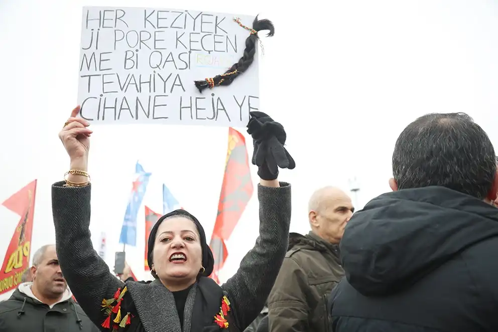 “Burada olmamın nedeni yalnızca Rojava’da süren saldırıların durdurulmasıdır. Saçımdaki örgü, Rojava’da direnen kadınları temsil ediyor. Orada yaşananlar başka bir coğrafyada olsaydı, Türkiye’de çok daha geniş kesimler bu vahşete karşı sokağa çıkardı. Ama söz konusu Kürt kadınları olunca herkes sessiz kalıyor, bu vahşet görmezden geliniyor” diyor.