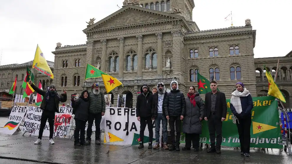 Rojava’ya dönük çete saldırılarına karşı İsviçre Federal Parlamentosu önündeki eylem 8. gününde devam ediyor. Eylemciler İsviçre başta olmak üzere uluslararası toplumu harekete geçmeye çağırıyor