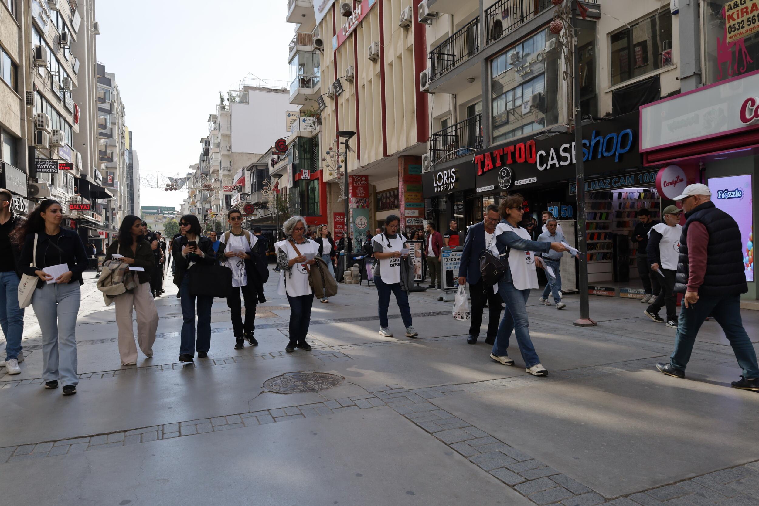 İHD İzmir Şubesi, ‘Barış bir haktır’ talebiyle Alsancak Kıbrıs Şehitleri Caddesi’nde bildiri dağıttı