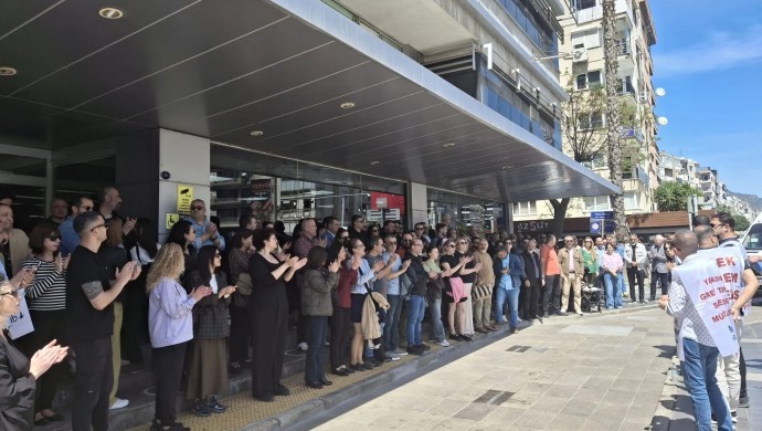 Karşıyaka Belediyesi önünde yapılan açıklamada ise Tüm Bel-Sen İzmir 2 Nolu Şubesi Yöneticisi Fırat Belen konuştu. Karşıyaka Belediyesi’nde görevli kamu emekçilerinin belediye tarihinde görülmemiş bir saldırıyla karşı karşıya olduğunu vurgulayan Belen, “Toplu sözleşme masasına oturup yeni bir sözleşme yapmanın planlarını kurduğumuz günlerde, belediye idaresi önce yıllardır almakta olduğumuz sosyal denge tazminatlarımızı (SDT) düşürmeye çalıştı, bunun karşılığında imza atmadığımız için toplu iş sözleşmemizi askıya aldı. Bununla birlikte günlerdir Karşıyaka Belediyesi emekçileri hakları için mücadele ediyor. İdareye şunu söyledik: 20 yıldır, 30 yıldır sözleşmelerle elde ettiğimiz hakları herhangi birinin iki dudağı arasından çıkan söze kurban etmeyiz. İdare aldığı bu kararla her bir memurun cebinden aylık 30 bin lira parayı da kesmiş oldu. Bu meblağ, müdürlere verdiği makam tazminatları da düşünüldüğünde 50 bin liraya varan rakamlara ulaşmış oluyor. Her birimizin elinden evimizin kira parasını da aldılar, çocuklarımızın doktor parasını da aldılar. Zaten bankalarla başımız dertte, borçlarla ve faizlerle uğraşırken üzerimizdeki yükü kat be kat artırmış oldular” ifadelerini kullandı.