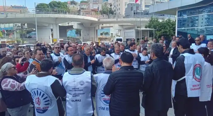 Tüm Belediye ve Yerel Yönetim Hizmetleri Emekçileri Sendikası (Tüm Bel-Sen) İzmir 2 Nolu Şubesi, Bayraklı Belediyesi ile devam eden toplu iş sözleşmesi görüşmelerinde yaşanan anlaşmazlığa dair belediye binası önünde basın açıklaması yaptı.