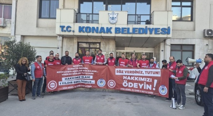 Konak Belediyesi önünde bir araya gelen çalışanlar adına konuşan Genel-İş İzmir 5 Nolu Şube Başkanı Savaş Aras, şunları belirtti: