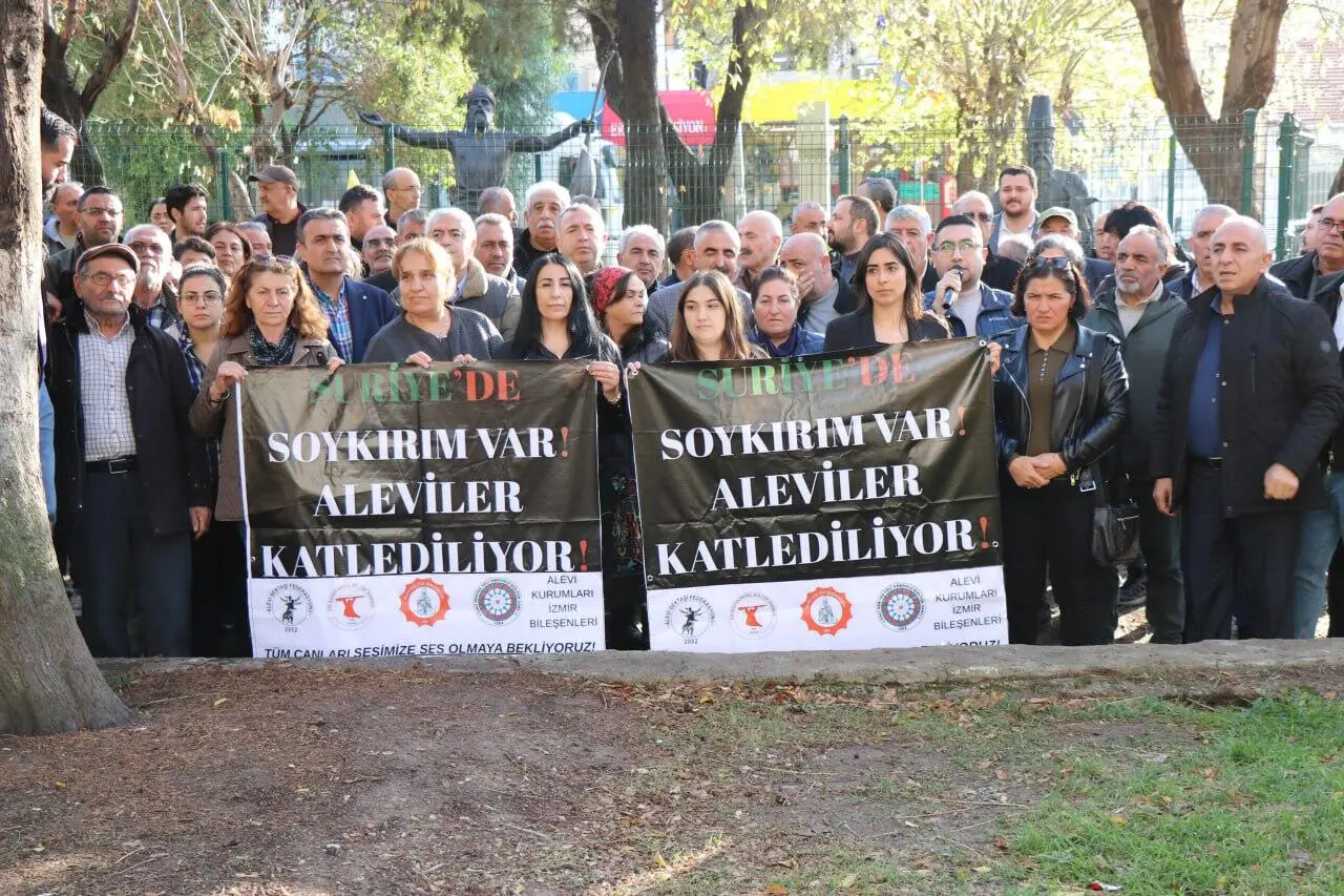 İzmir’deki Alevi örgütleri, Suriye’de Alevilere dönük gerçekleştirilen katliamlara ilişkin Alevi Kültü Dernekleri Buca Şubesi Cemevi önünde bulunan Hacı Bektaş Veli Parkı’nda açıklama yaptı. “Katil HTŞ, işbirlikçi AKP” ve “Kurtuluş yok tek başına ya hep beraber ya hiçbirimiz” sloganlarının atıldığı açıklamada, “Suriye’de Alevi katliamı var, durdurun!” pankartı açıldı. Açıklamaya Alevi örgüt temsilcileri ve çok sayıda yurttaş katıldı.