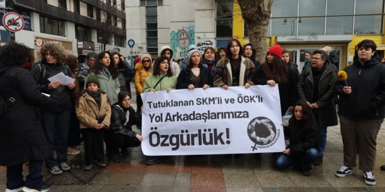 PTT önünde açıklama yapan kadınlardan ortak metni okuyan Feminist Kolektiften Selin Top, yıllardır birlikte mücadele ettikleri SKM ve ÖGK’lilerle dayanışacaklarını belirterek, “Bu tutuklamalar tesadüf değil erkek devlet aklının kadınların örgütlü gücünden duyduğu korkunun bir sonucudur” dedi. Selin Top, sözlerini şöyle tamamladı: