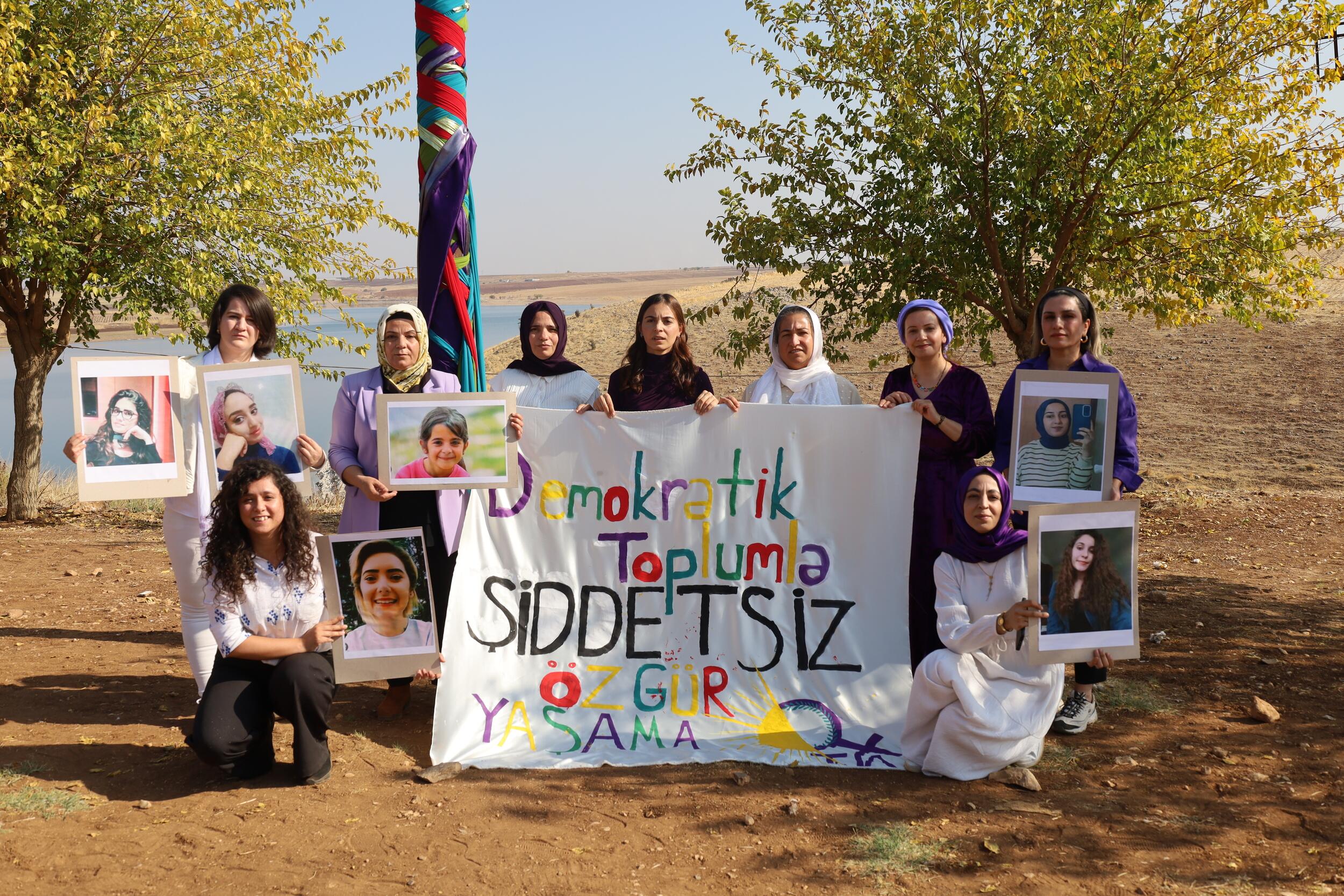 Tevgera Jinên Azad (TJA), 25 Kasım Uluslararası Kadına Şiddetle Mücadele Günü kapsamında yapılacak etkinliklere Riha’nın (Urfa) Curnê Reş ilçesinde start verdi. Fik (Faik) köyünde bir araya gelen kadınlar, üzerinde, “Demokratik Toplumla Şiddetsiz Özgür Yaşama” yazılı pankart açtı. Pankartın yanı sıra katledilen kadın ve çocukların fotoğrafları taşındı. Kadınlar ilk olarak burada yaşam ağacı etrafında çember oluşturarak kurdelelerden örgüler yaptı.