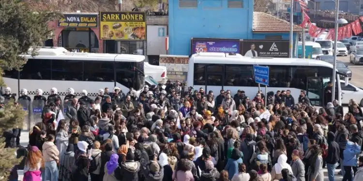 Halkların Eşitlik ve Demokrasi Partisi (DEM Parti) Pîrsus İlçe Örgütü binasında da çok sayıda kadın bir araya geldi. Kadınlar, meydana gitmek isterken polisler tarafından engellendi. Polislerden biri “Demokratik haklar demokratik ülkelerde kullanılır” ifadelerini kullanması dikkati çekti. Tepki üzerine kadınların meydana geçmesine izin verildi.