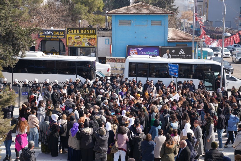 Halkların Eşitlik ve Demokrasi Partisi (DEM Parti) Pîrsus İlçe Örgütü binasında da çok sayıda kadın bir araya geldi. Kadınlar, meydana gitmek isterken polisler tarafından engellendi. Polislerden biri “Demokratik haklar demokratik ülkelerde kullanılır” ifadelerini kullanması dikkati çekti. Tepki üzerine kadınların meydana geçmesine izin verildi.