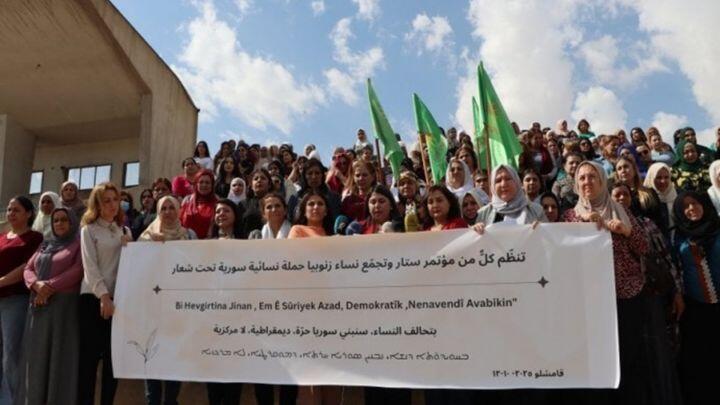 Kuzey ve Doğu Suriye’de kadınların öncülüğünde yürütülen çalışmalar her geçen gün büyürken, dünya kadınlarına da ilham oluyor. Kadın çalışmaları kapsamında Kongra Star ve Zenûbiya Kadın Topluluğu, Hesekê kentinde, “Kadınların birliği, birleşik ve merkezi olmayan bir Suriye’de adalet ve demokrasiyi inşa etmenin temeli” şiarıyla 20 Eylül’de konferans düzenledi. 600 delegenin katıldığı konferansta, kadın haklarının savunulması başta olmak üzere birçok karar alındı. Alınan kararlar arasında merkezi olmayan bir Suriye için uluslararası bir kampanya başlatma kararı alındı.
