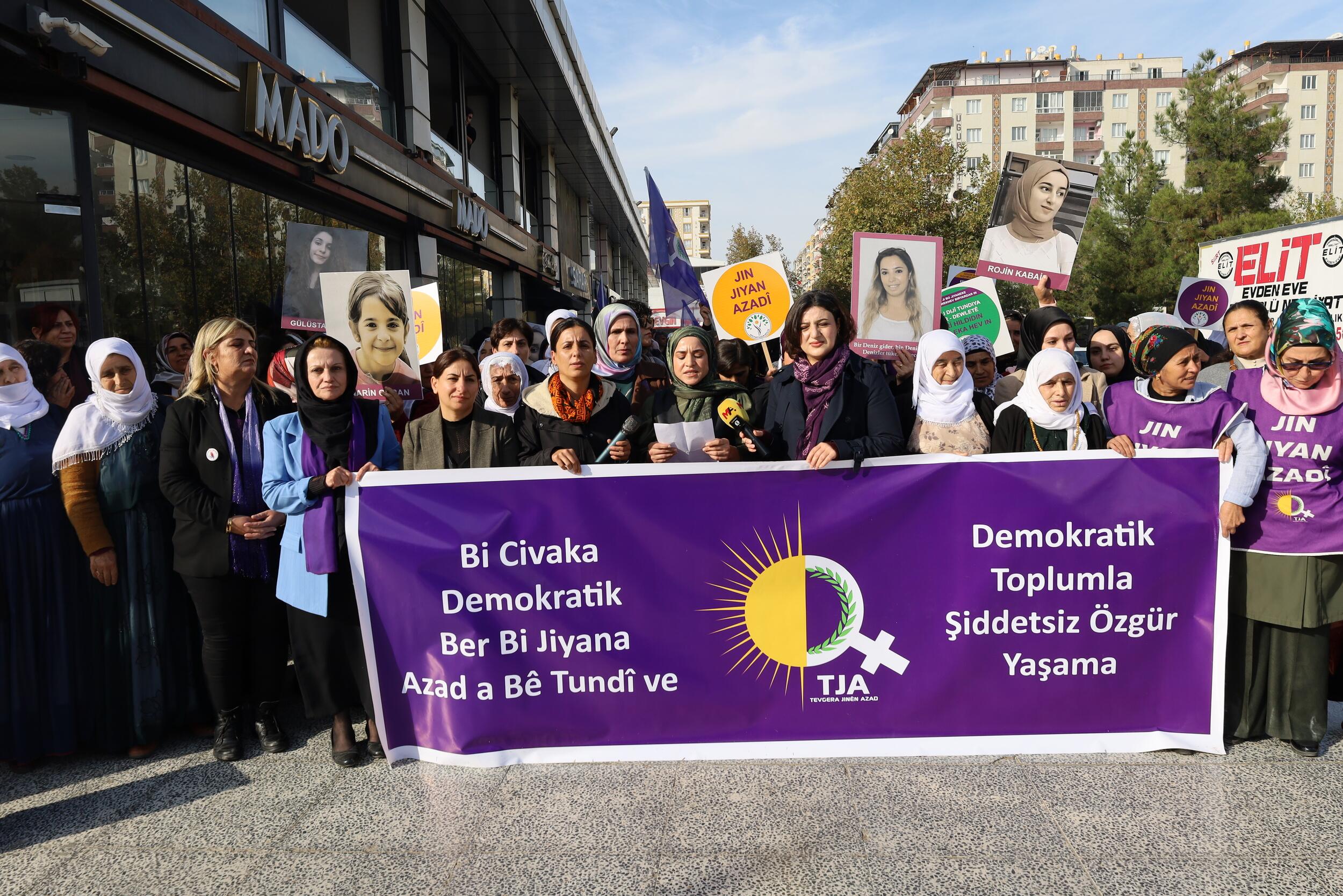 25 Kasım’ın yalnızca bir anma günü olmadığının, eşitlik temelinde yaşam talebini büyütme günü olduğunu belirten Zilan Gümüş, “Kadın Sığınma Evlerinin sayısı, erişilebilirliği ve niteliği artırılmalıdır. Bununla beraber kadınların yalnızca tehlikeden korunmaları değil; ekonomik ve sosyal yaşama özgür bir şekilde katılabilecekleri koşullar sağlanmalıdır. Sosyal medyanın yaygınlaşması ve teknolojiye erişimin artması ile birlikte kadınlara yönelik artan dijital şiddete karşı etkin tedbirler alınmalı, kadınların ifade ve fikir özgürlüğü korunmalıdır. Kürt Meselesi bağlamında yürütülmekte olan çözüm sürecine kadınların etkin katılımları sağlanmalı, BM Güvenlik Konseyi’nin 1325 sayılı Kararı’nın kadınların korunması ve karar alma süreçlerine katılımı yönündeki ilkeleri benimsenmelidir” diye konuştu.