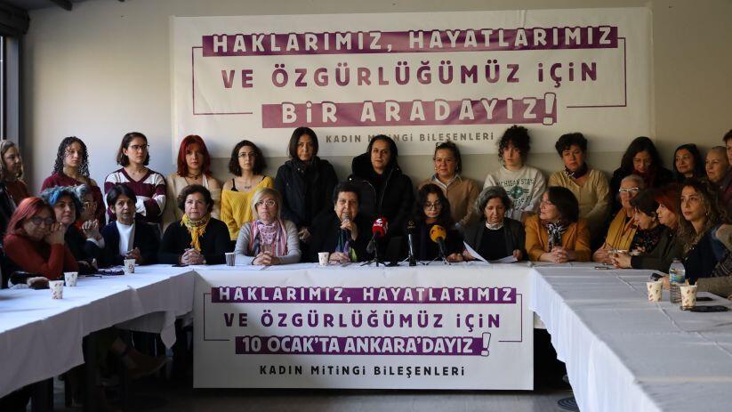Ankara’da 37 kadın kurumunun ortak çağrısıyla 10 Ocak’ta gerçekleştirilecek “Haklarımız, Hayatlarımız ve Özgürlüğümüz için Büyük Kadın Mitingi”ne ilişkin basın toplantısı düzenlendi.