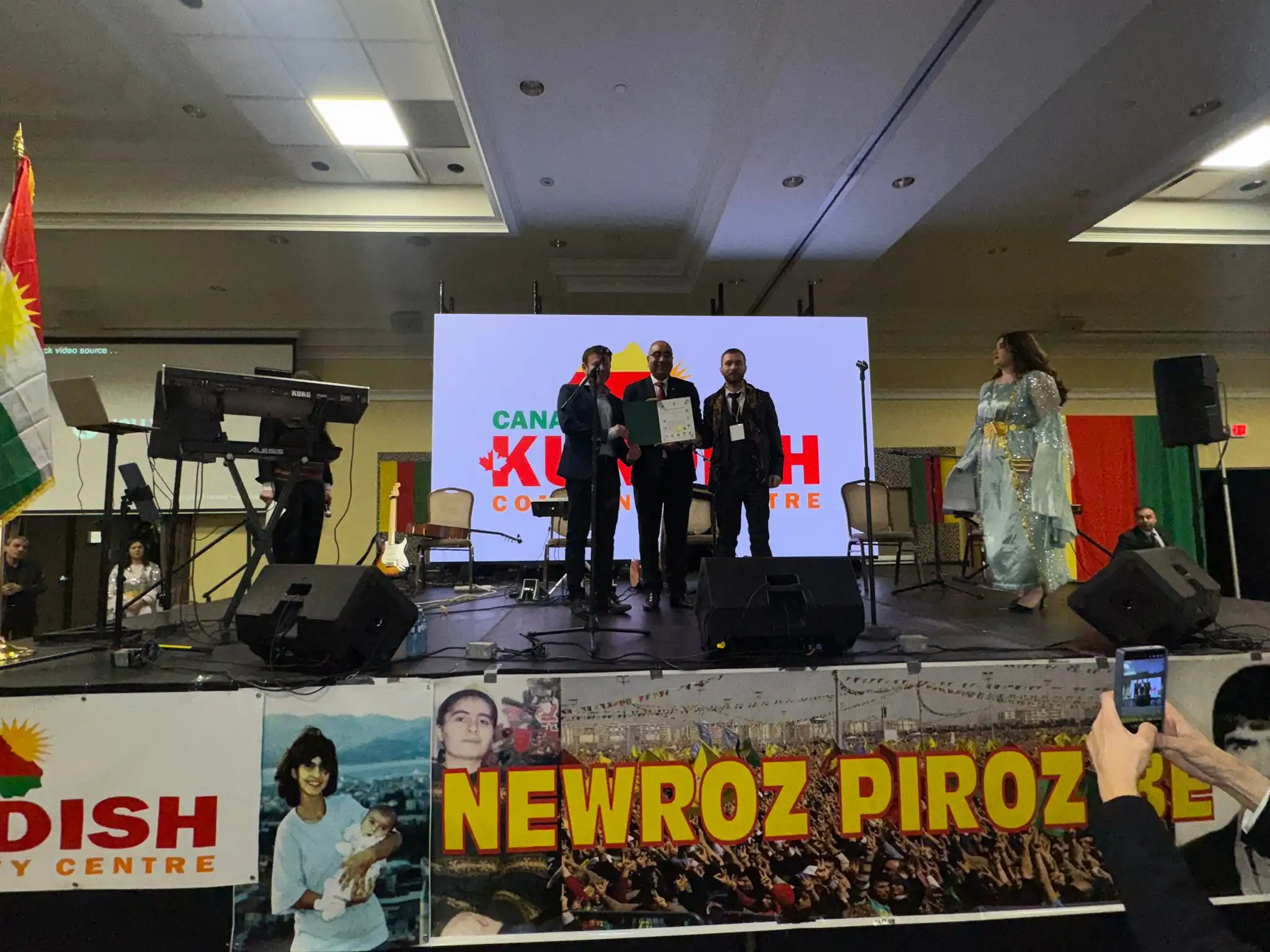 Kutlama, Kürdistan özgürlük mücadelesi şehitleri anısına yapılan bir dakikalık saygı duruşuyla başladı. Ardından Ey Reqîb ve Kanada marşı okundu.  Sanatçılar Deniz Deman, Hozan Cane, Mervan Tan, Evin Şah ve Osman Mirwais sahne aldı.