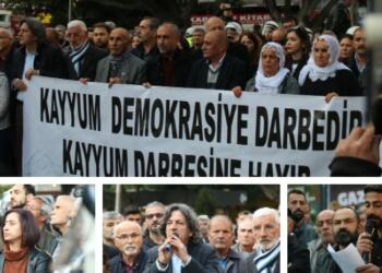 Kayyımın protesto edildiği açıklamalarda, ‘Yine bir uygulama haline gelen ve seçmen iradesini tanımamak olan kayyım politikalarına derhal son verilsin’ denildi...