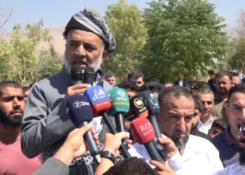 Dukan’da Türkiye’nin SİHA saldırısı sonucu yaşamını yitirenlerin cenaze töreninde konuşan İmam Omer Şaristênî, ‘Ülkemizin egemenliği korunmuyor, savaş uçakları her gün...