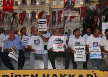 DEM Partili Colemêrg Belediyesi’ne kayyım atanmasına karşı başlatılan eylemde, Türkiye’nin Federe Kürdistan'a yönelik saldırısında kadın gazetecilerin katledilmesi protesto edildi İstanbul...