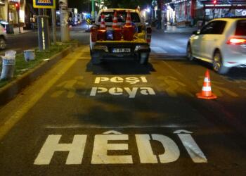 Tümünü GörDetailsAmed Büyükşehir Belediyesi’nin kentin birçok caddesine yazılan 'Pêşî Peya (Önce Yaya)' ve 'Hêdi (Yavaş)' Kürtçe uyarı yazıları yeniden yazıldı Amed...