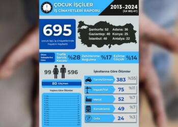 İSİG'in hazırladığı çalıştırılan çocuk raporuna göre, 2013'ten beri en az 695 çocuk iş cinayetlerinde yaşamını yitirdi İşçi Sağlığı ve İş...