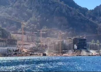Muğla’nın Marmaris İlçesi Kızılbük’te idari mahkemenin durdurduğu otel inşaatında görevli olanlar, Milli Parka girmek isteyenleri engelledi. Sinpaş tarafından yapılan otel...