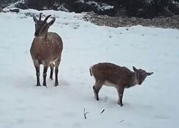 Federe Kürdistan’da son günlerde etkili olan kar yağışı yaban keçilerinin beslenme şartlarını zorlaştırdı. Kar yağışı sebebiyle aşağılara inen yaban keçileri...