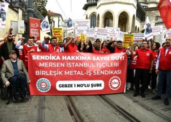 Tümünü GörDetailsHakları için grevde olan Birleşik Metal-İş üyesi işçiler yaptıkları açıklamada, 'Mersen'in işçisi sizin köleniz değildir, bu ülke de sizin açık...