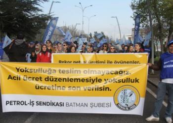 Petrol-İş Sendikası Êlih Şubesi üyeleri, artan hayat pahalılığı, yüksek enflasyon, eriyen maaşları ve alım güçlerinin düşmesinden kaynaklı insanca yaşam talebiyle...