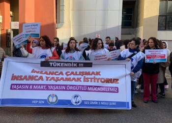 Tümünü GörDetailsİzmir’de artan mesai saatlerini protesto eden sağlık emekçileri ‘Geçici görevlendirmelere son verilmeli, şehir hastanesinde personel açığı olan klinikler kapatılmalıdır’ dedi...