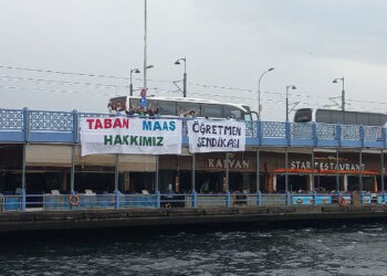 Öğretmenler Galata Köprüsü’ne pankart astı: Taban maaş hakkımız