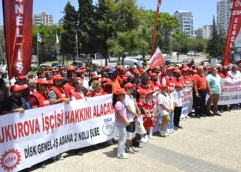 Çukurova Belediye işçileri yönetimin sözünü verdiği ücretlerinin ödenmemesine tepki göstererek, ‘Açlık sınırının altına itmeyin’ dedi DİSK Genel-İş Sendikası Adana 2...