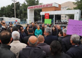 Tümünü GörDetailsKayyım atanan Mêrdîn Büyükşehir Belediyesi'nin meclis üyeleri, belediye binası önünde toplantısını gerçekleştirdi. Eşbaşkan Ahmet Türk, Erdoğan'ın sözlerine yanıt vererek, 'Benim...