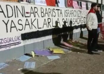 ODTÜ’de ülkücü bir grup, öğrenciler tarafından 'Kadın duvarı' olarak adlandıran ve Kürtçe sloganların olduğu duvardaki afişleri yırttı, bozkurt işaretiyle yürüyüş...
