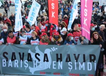 KESK, DİSK, TMMOB ve TTB, Ukrayna ve Rusya arasındaki savaşı protesto etti: Savaşa hayır, barış hemen şimdi Kamu Emekçileri Sendikası...