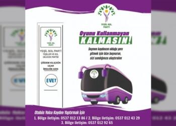 Tümünü GörDetailsYeşil Sol Parti İstanbul İl Örgütü farklı kentlerde oy kullanacak seçmenler için 'Oy kullanmayan kalmasın' kampanyası başlattı. Kampanya kapsamında 15...
