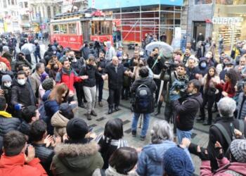 İstiklal Caddesi'nde Kürtçe şarkı söyleyen sanatçıların engelenmesi ve gözaltına alınmaları sonrası başlayan protestolar Aram Tigran’ın ezgileriyle sürdü. HDP İstanbul İl...