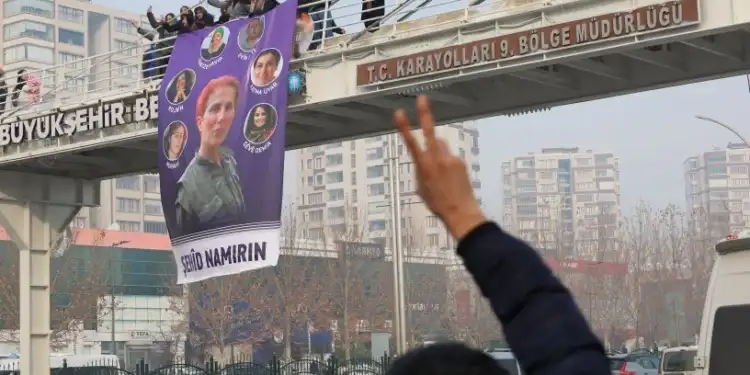 Özgür Kadın Hareketi (Tevgera Jinên Azad -TJA), 9 Ocak 2013’te Paris’te katledilen Kürt kadın siyasetçiler Sakine Cansız, Fidan Doğan ve Leyla Şaylemez, 23 Aralık 2023’te Paris’te katledilen Evîn Goyi ve 5 Ocak 2015’te sokağa çıkma yasakları sırasında katledilen Pakize Nayır, Sevê Demir, Fatma Uyar’ın fotoğraflarının bir üst geçide astı. TJA’lı kadınlar, “Şehid namirin” yazılan fotoğrafları, Amed’in Rezan (Bağlar) ilçesinde bulunan Kadın Doğum Devlet Hastanesi önündeki üst geçide astı. “Jin jiyan azadî” sloganı ve zılgıtlarla fotoğrafları asan kadınlara, çevredekiler, alkış, ıslık çalıp zafer işaretleriyle destek verdi.