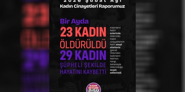 Kadın Cinayetlerini Durduracağız Platformu Şubat ayı raporunu kamuoyuyla paylaştı. 23 kadının erkekler tarafından katledildiği belirtilen raporda, 29 kadının ise şüpheli şekilde yaşamını yitirdiği belirlendi.