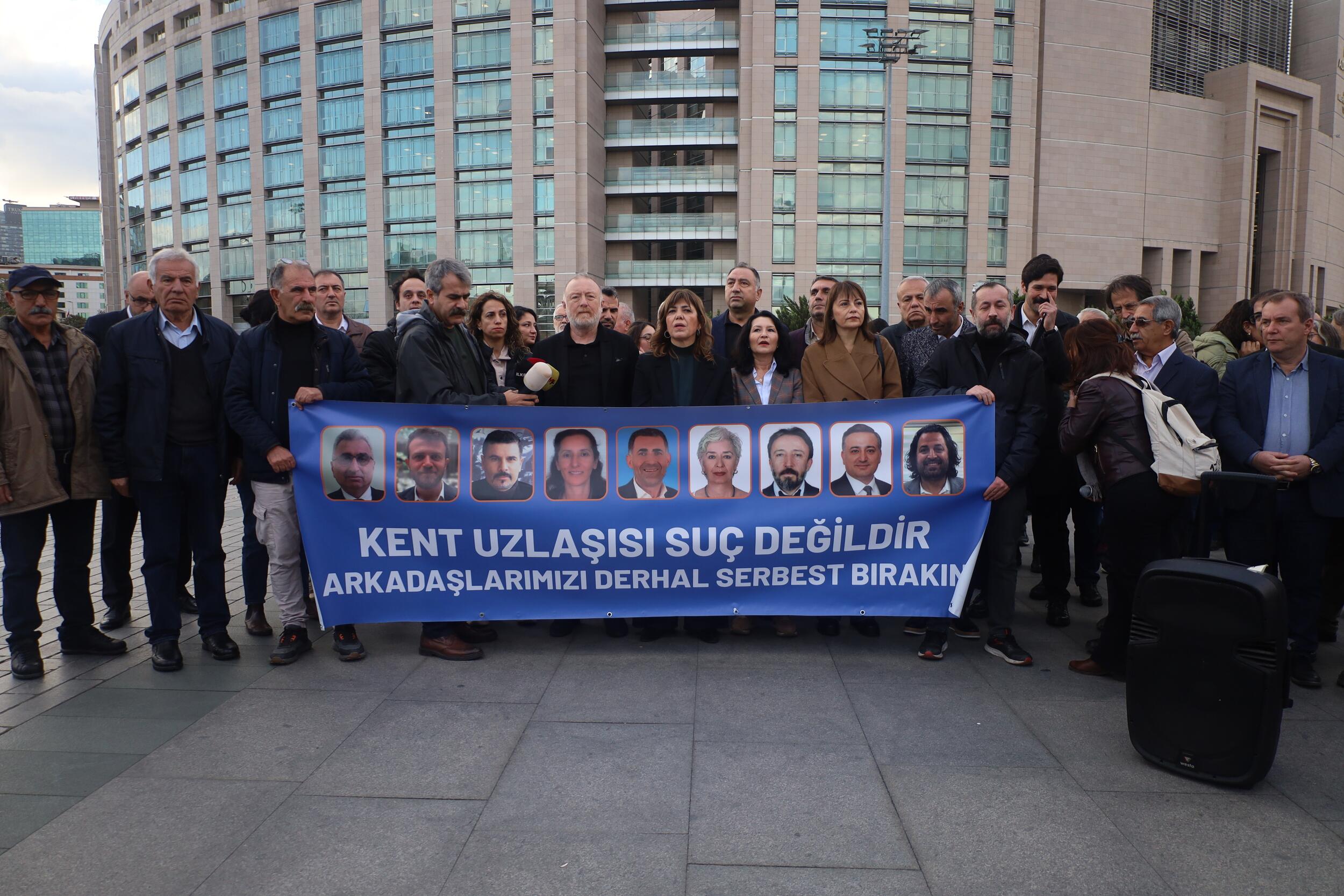 Halkların Demokratik Kongresi (HDK) ve Halkların Eşitlik ve Demokrasi Partisi (DEM Parti), Kent Uzlaşısı davasının duruşmasının görüleceği İstanbul Adliyesi önünde açıklama yaptı. Açıklamaya HDK Eşsözcüsü Ali Kenanoğlu ve Meral Danış Beştaş, DEM Parti milletvekilleri, çok sayıda siyasi parti, sivil toplum örgütü temsilcisi katıldı.