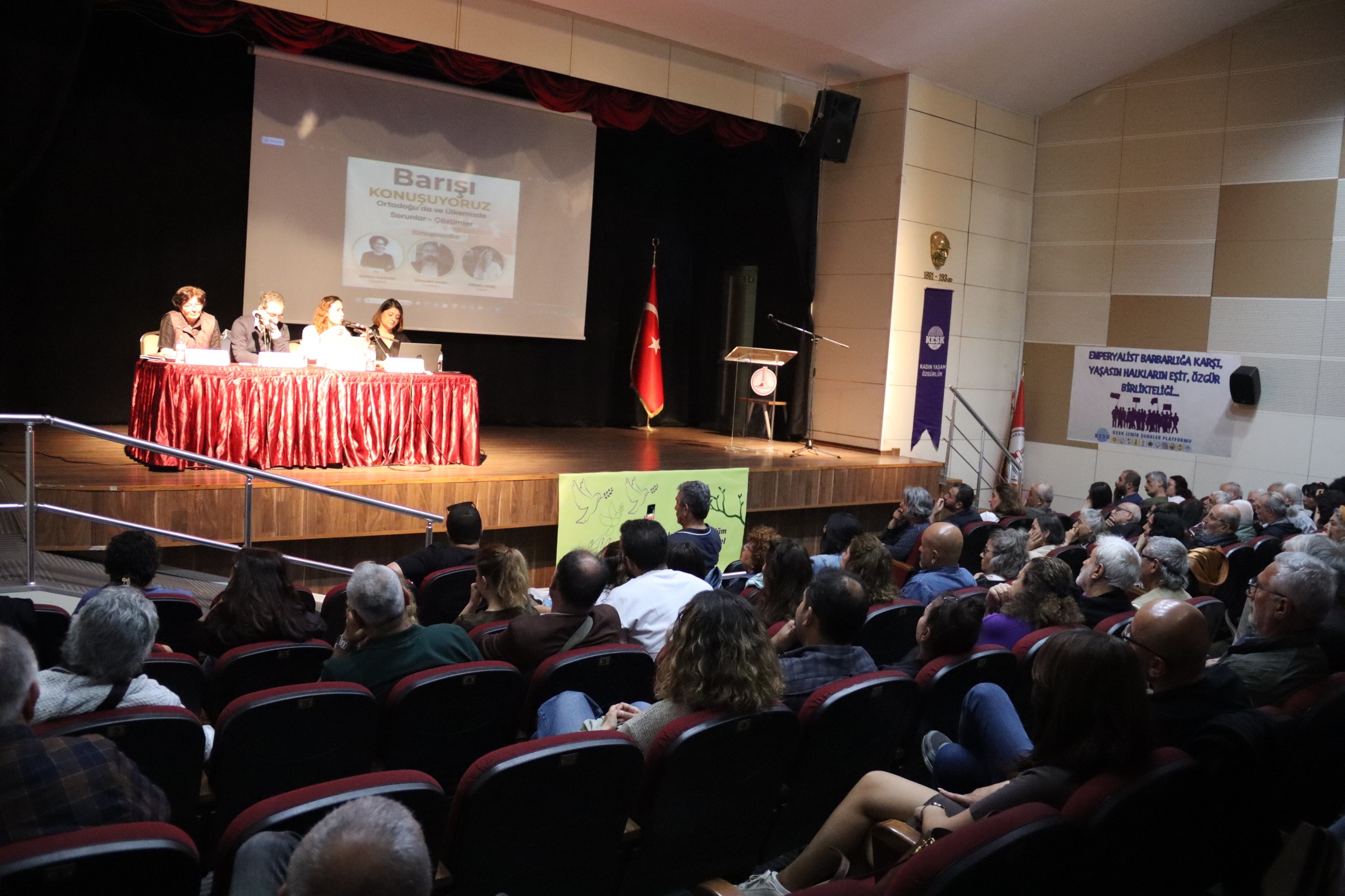 Kamu Emekçileri Sendikaları Konfederasyonu(KESK) İzmir Şubeler Platformu, “Barışı konuşuyoruz: Ortadoğu’da ve ülkemizde sorunlar-çözümler” konulu panel düzenledi. Karşıyaka Çarşı Kültür Merkezi’nde düzenlenen panelin modertörlüğünü Akademisyen Lülüfer Körükmez yaparken konuşmacı olarak Gazeteci Yazar Nuray Sancar, Gazeteci İbrahim Varlı ve Gazeteci Yüksel Genç katıldı.