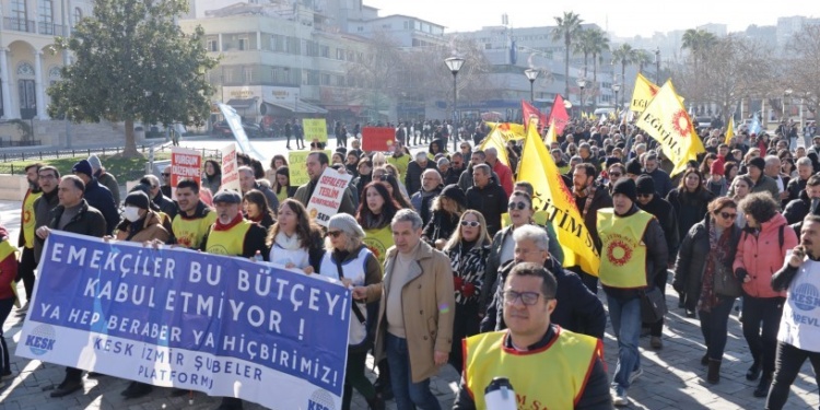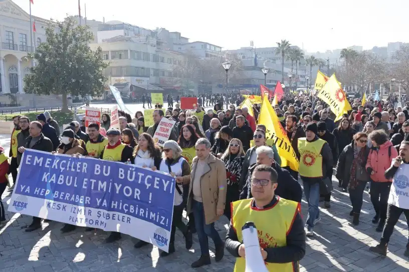 KESK İzmir Şubeler Platformu, Konak YKM önünde toplanarak, SGK binası önüne yürüyüş gerçekleştirdi. Halkların Eşitlik ve Demokrasi Partisi (DEM Parti) İzmir Milletvekili İbrahim Akın’ın yanı sıra çok sayıda sendika temsilcisi ve yüzlerce kamu emekçisi katıldı. Yürüyüşe inşaatta çalışan işçiler alkışlarla destek verdi.