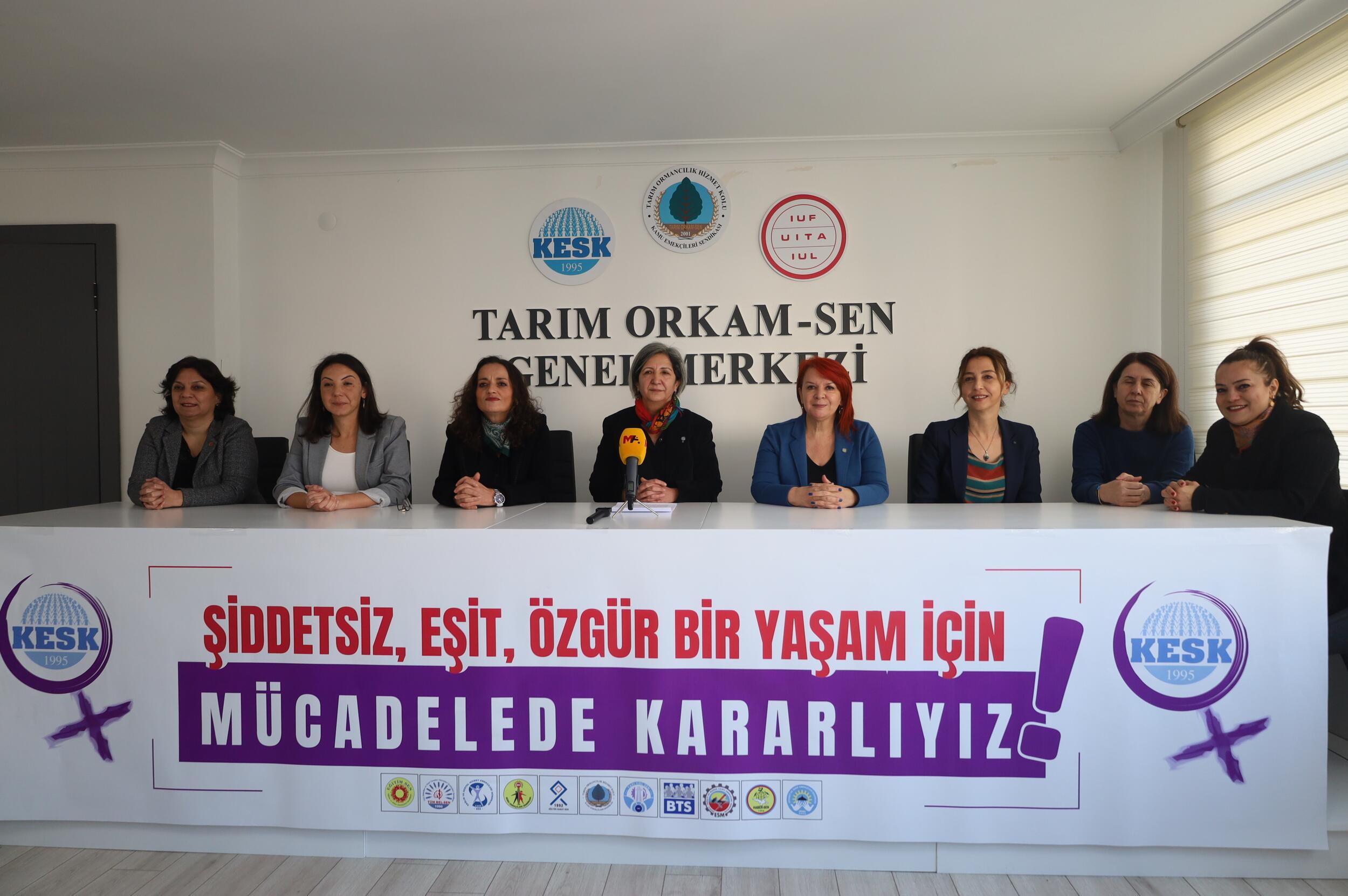 Kamu Emekçileri Sendikaları Konfederasyonu (KESK) 25 Kasım Kadına Karşı Şiddete Karşı Uluslararası Mücadele Günü’ne dair programı Tarım ve Ormancılık Hizmet Kolu Kamu Emekçileri Sendikası (Tarım Orkam-Sen) Genel Merkezi’nde düzenlediği basın toplantısıyla açıkladı. “Şiddetsiz, eşit, özgür bir yaşam için mücadelede kararlıyız” pankartıyla yapılan açıklamayı yapan KESK Kadın Sekreteri Döne Gevher, Dilovası’nda parfüm dolum fabrikasında ihmaller sonucu çıkan yangında hayatını kaybeden çocuk ve kadın işçileri andı.