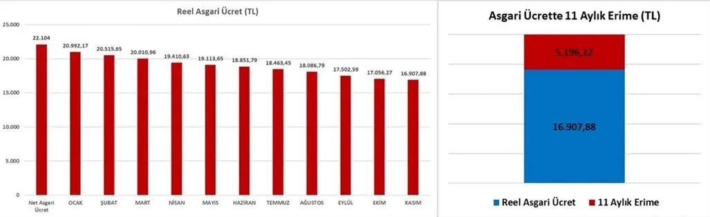 Bu zammış gibi sunulan şey aslında 2025 yılında 11 ayda enflasyon nedeniyle ortaya çıkan kaybı karşılamaya ancak yetiyor. Çünkü bu yılın ilk 11 ayında asgari ücretteki erime 5,196 TL’yi aşıyor. Geriye sadece 775 TL kalıyor.